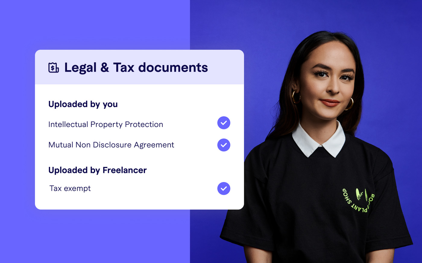 We automate and customize the legal and tax compliance process, so you get peace of mind that every step of your freelance lifecycle is in order, while reducing any risk of worker misclassification.